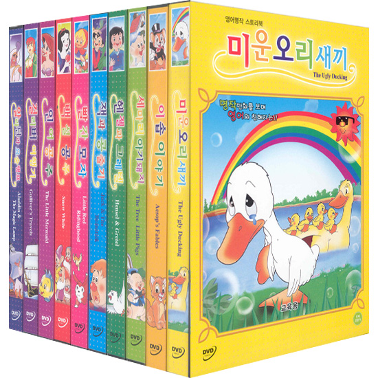 [DVD] 영어명작스토리북 10종세트: 미운오리새끼+이솝이야기+세마리아기돼지+헨젤과그레텔+잭과콩줄기+빨간모자+백설공주+인어공주+걸리버여행기+알라딘과요술램프